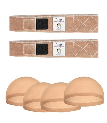 Wig Accessories: 2 Pack Adjustable Velvet Wig Grip Band for Keeping Wigs in Place + 4 Piece Wig Caps