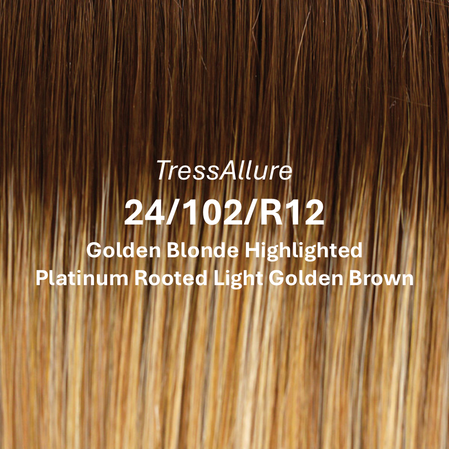 Color shown: Golden Blonde Highlighted Platinum Rooted Light Golden Brown (24/102/R12).